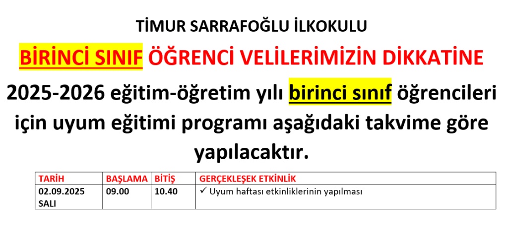 02 EYLÜL BİRİNCİ SINIFLAR UYUM PROGRAMI