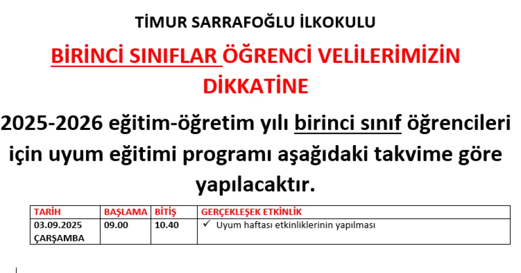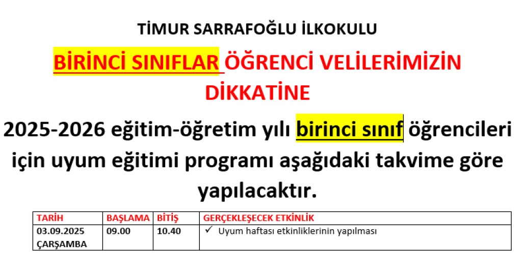 03 EYLÜL BİRİNCİ SINIFLAR UYUM PROGRAMI